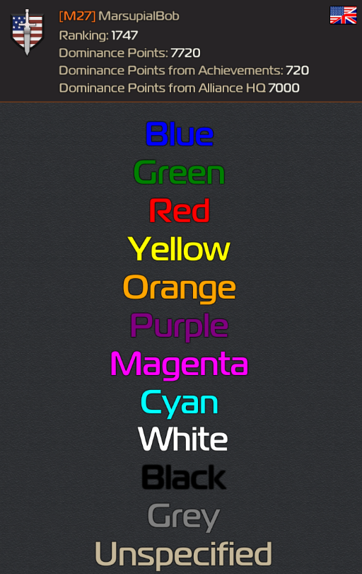 In some cases, you may want to have the same color but text of a different size or different colors but the same size. Because HTML doesn't consider a tag closed until the closing tag is written, you can keep a tag open and save on coding. For example, I could have my entire alliance page be in the color of white, include different sizes but only include one color such as this